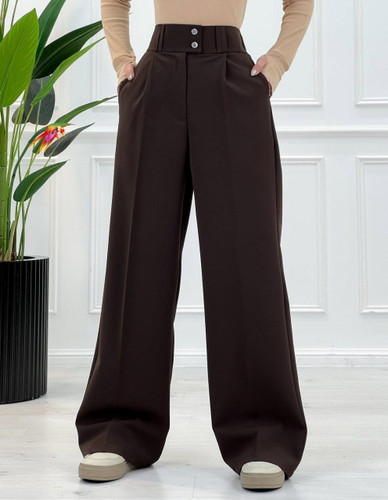 شلوار بگ مازراتی زنانه ساسون دار قهوه ای پشت کش دار اعلا