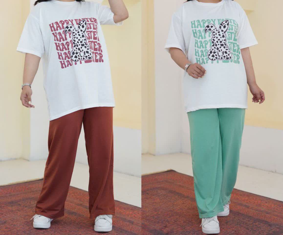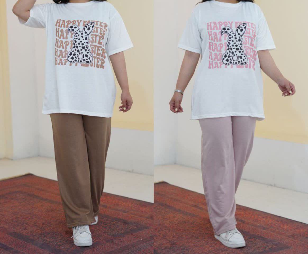 ست تیشرت شلوار زنانه قواره آزاد لش استایل بغل نوار آدیداس