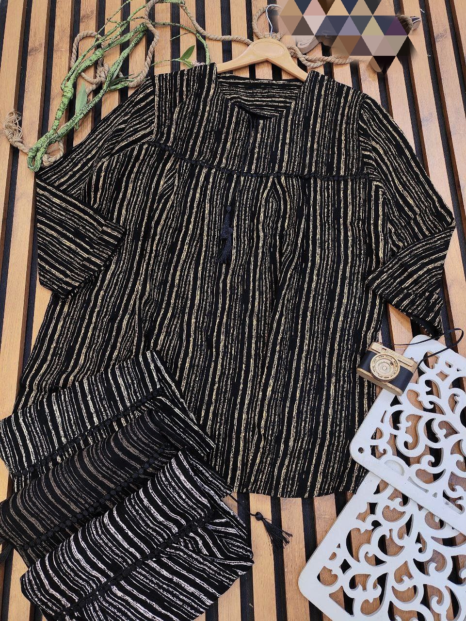 👚نام کالا : شومیز تونیکیه دبل کرپ کنف دار جلو منگوله دار 😉👌