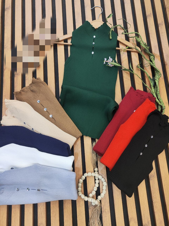 تاپ بافت پاییزه کرکره ای کبریتی جلو نگین دار